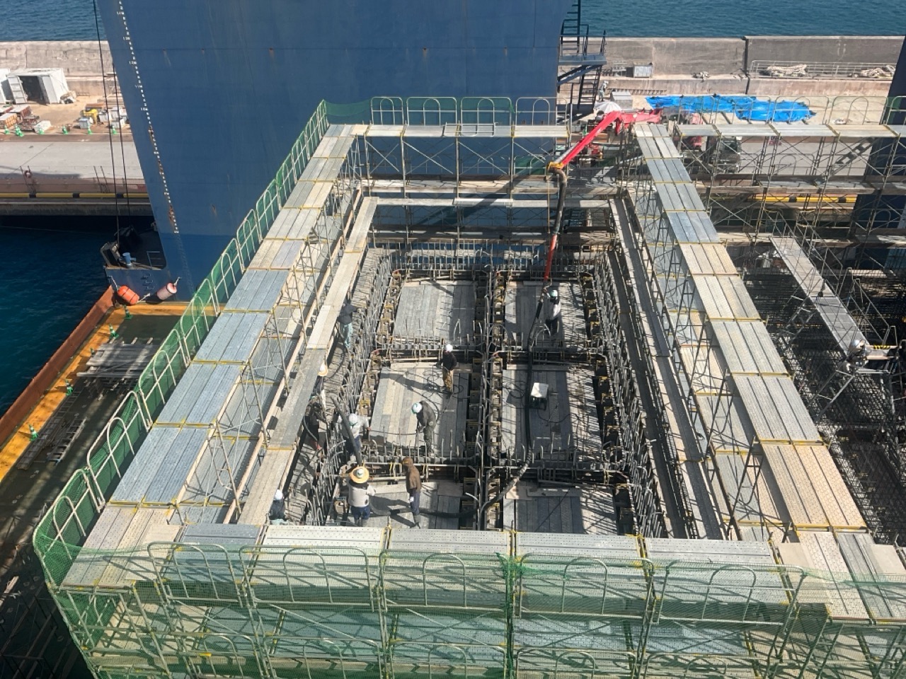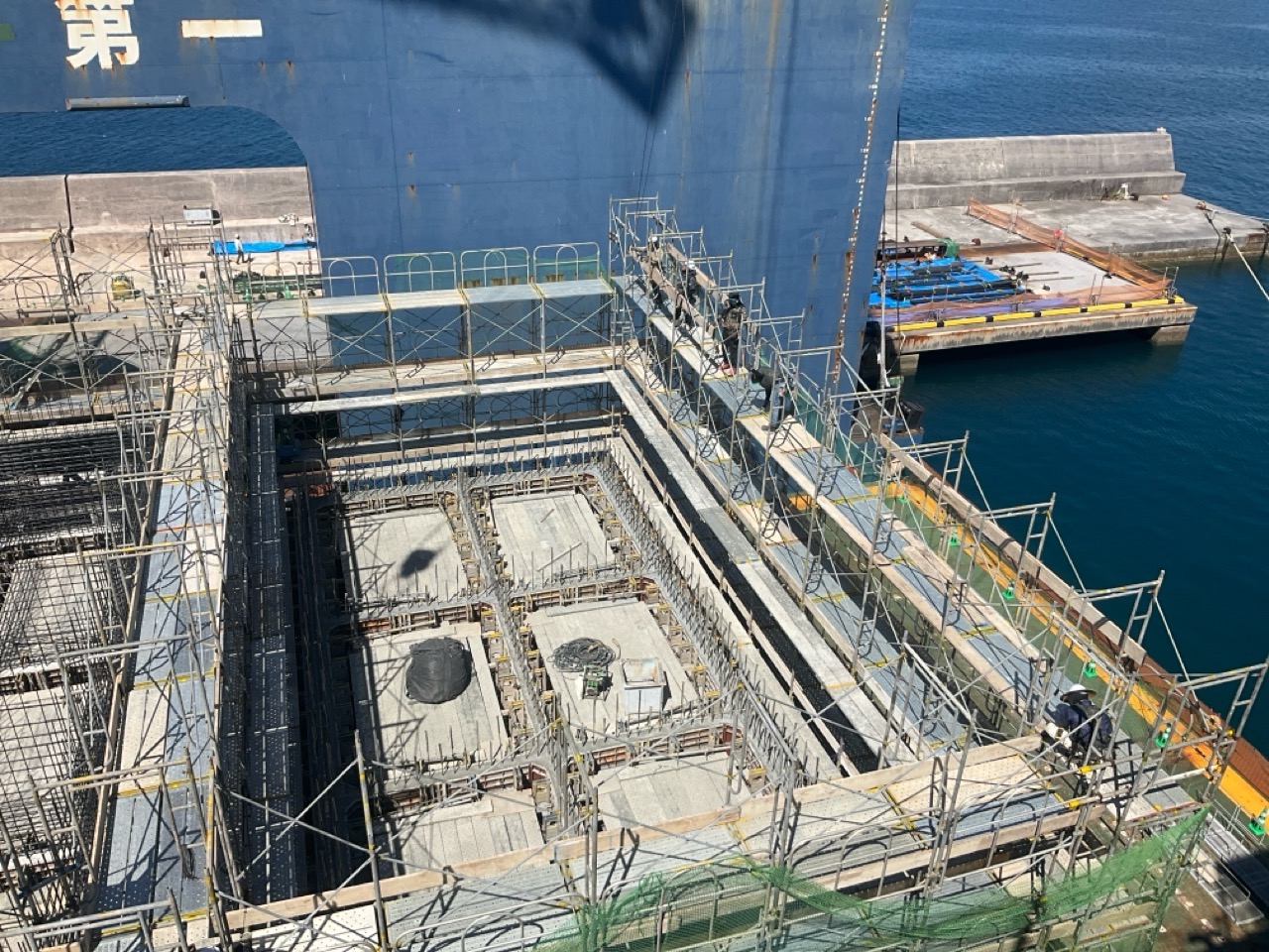 | 構造 | 那覇港(新港ふ頭地区)岸壁(-10m)(耐震) 岸壁部ケーソン製作・進水・据付 1,088t/函 3函 |