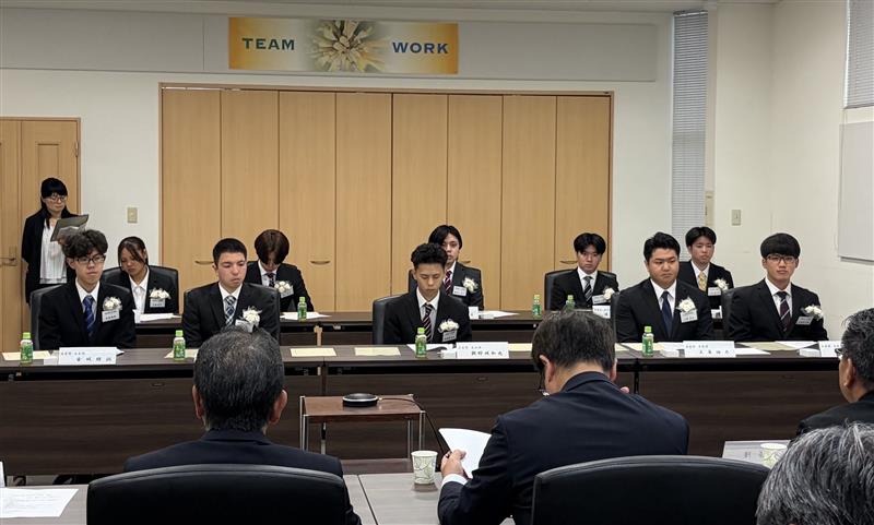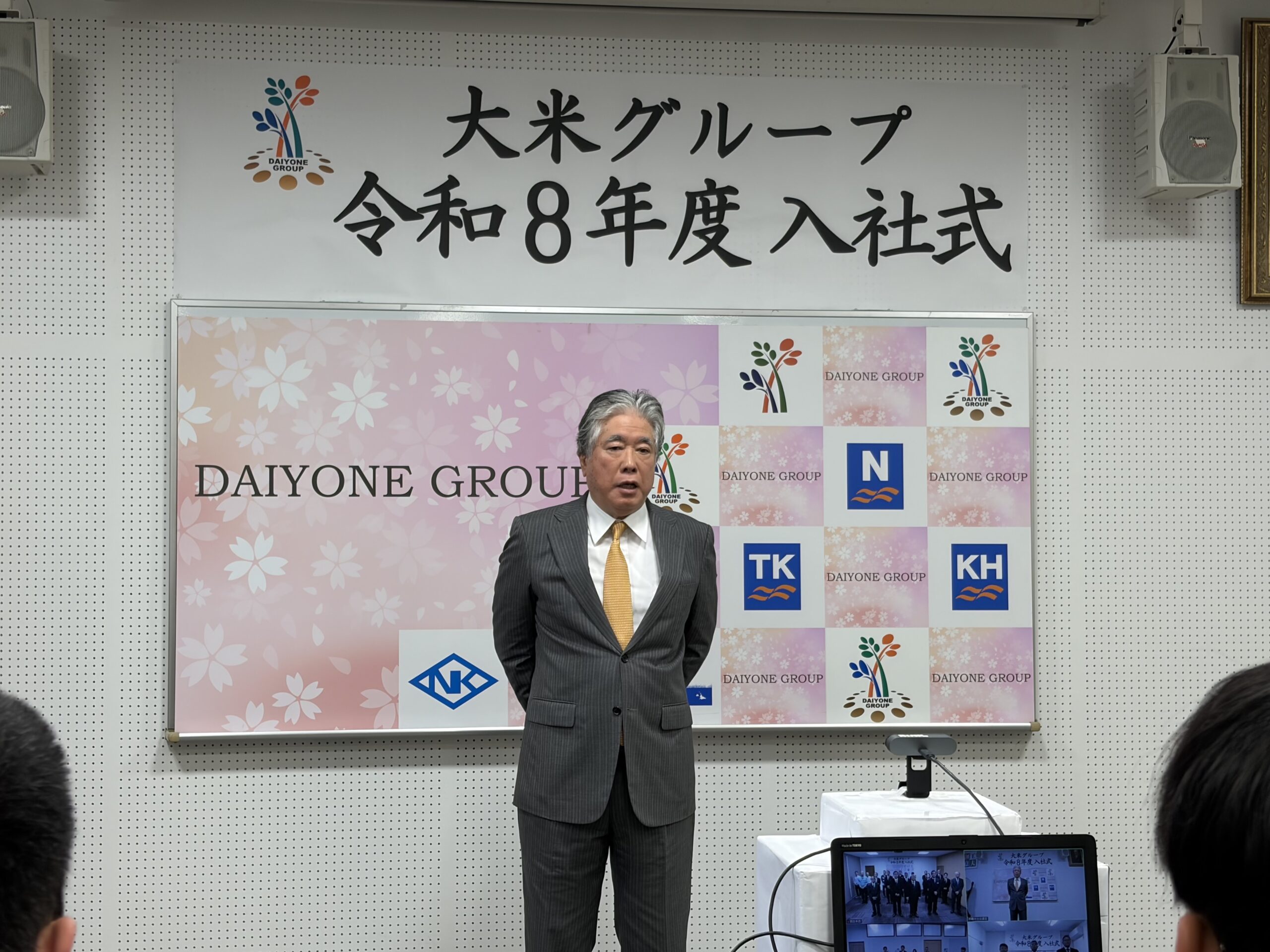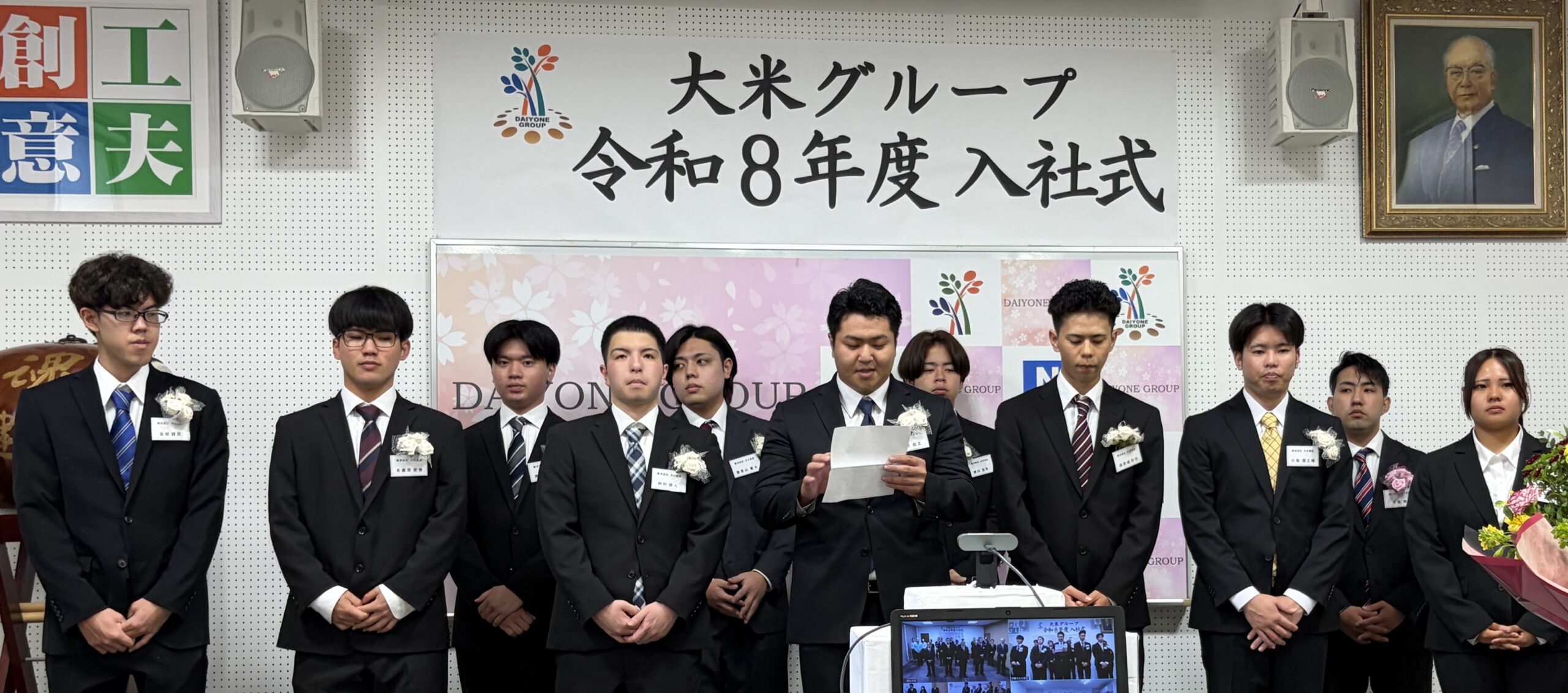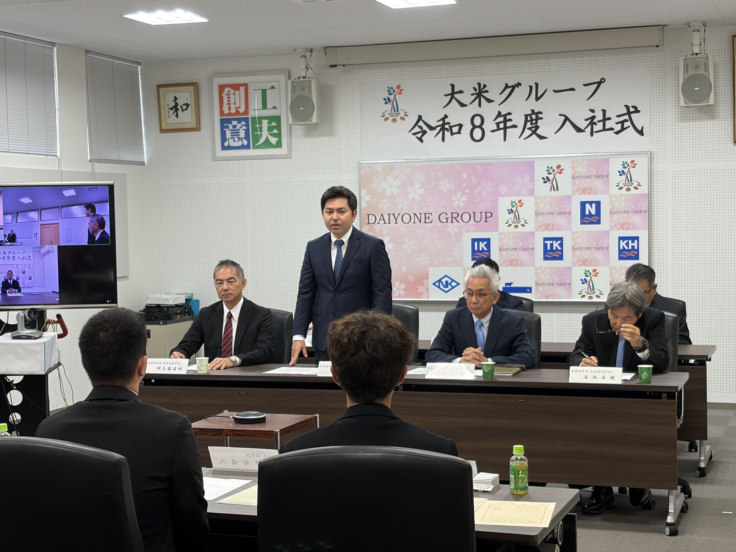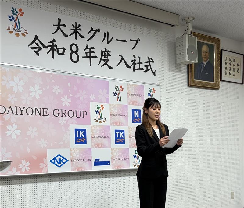会長、先輩社員より新入社員へ歓迎の挨拶を行い、続いて新入社員より力強い決意表明の挨拶がありました。