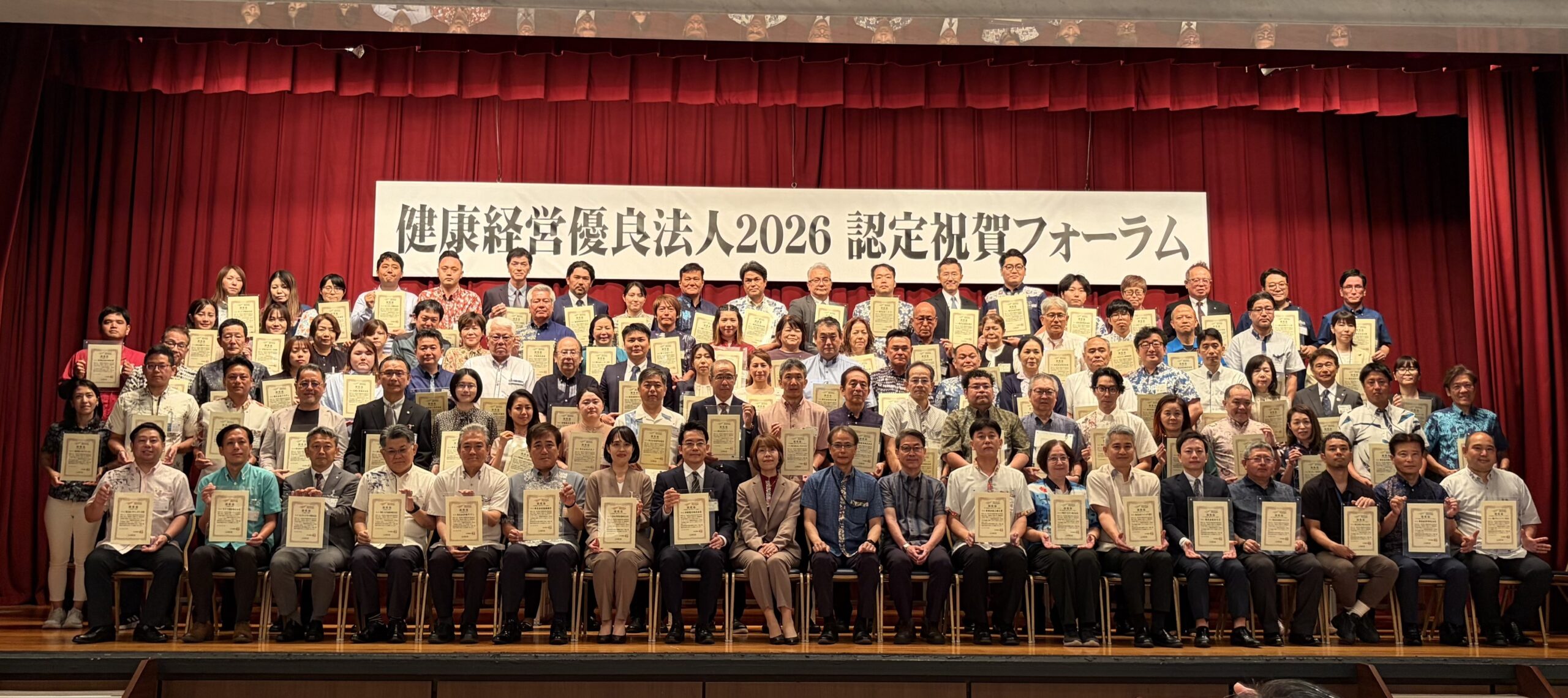 令和8年4月21日(火)沖縄ハーバービューホテルにて開催された、健康経営優良法人2026認定授与式において弊社は中小規模法人部門での認定を受けました。また、グループ会社である南西海運株式会社もあわせて認定されました。