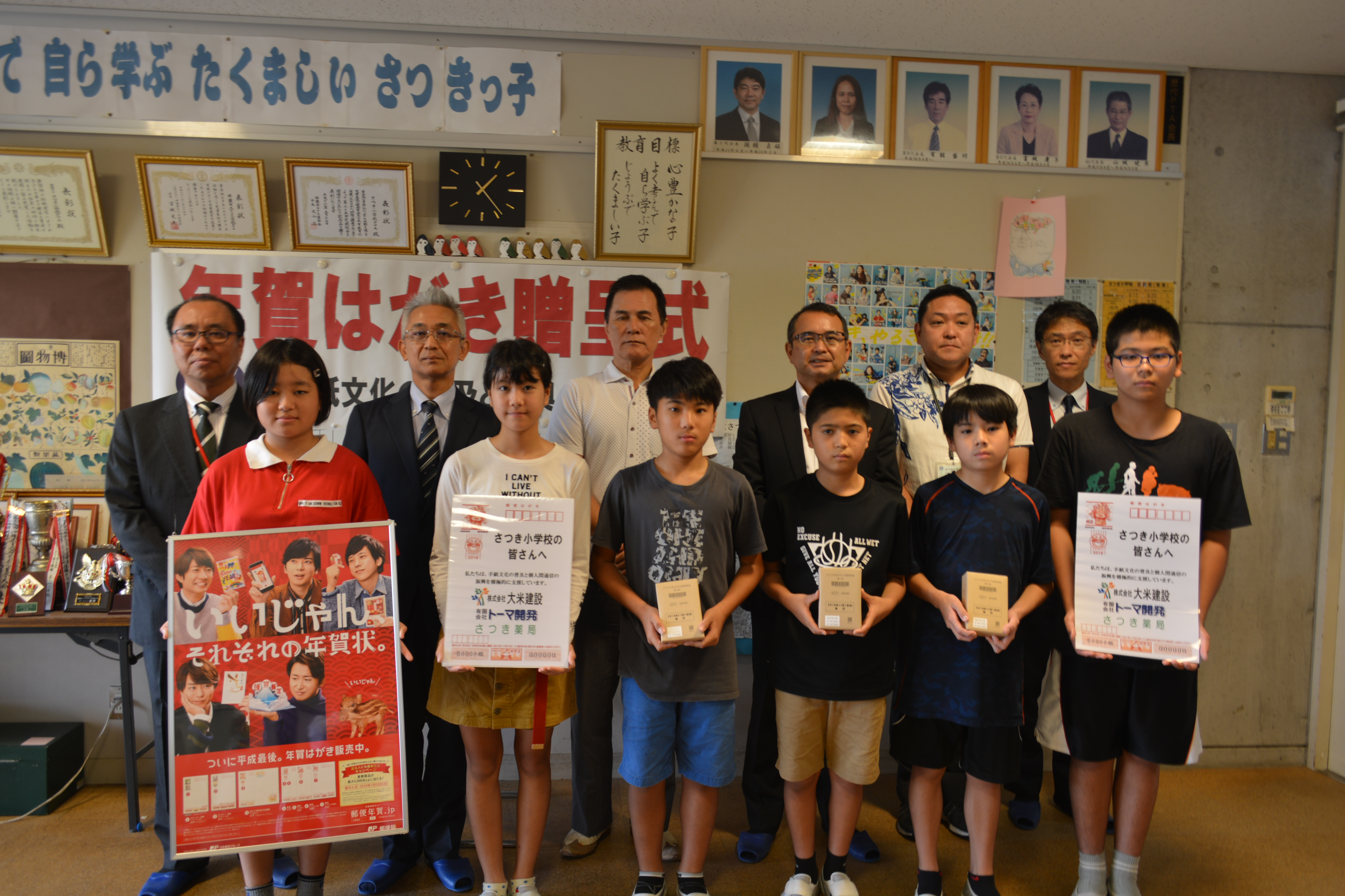 さつき小学校へ年賀はがきを贈呈しました